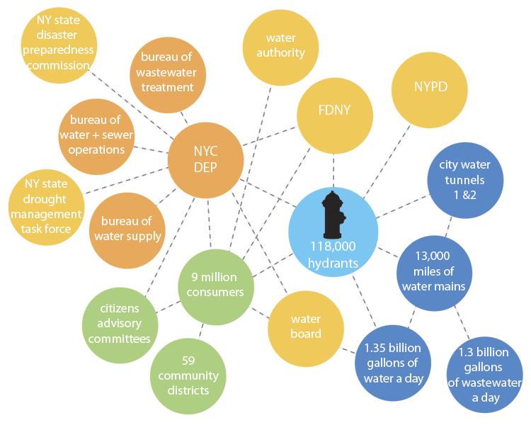 Fire hydrant water also links a complex bureaucracy of city agencies working to serve nine million customers.
